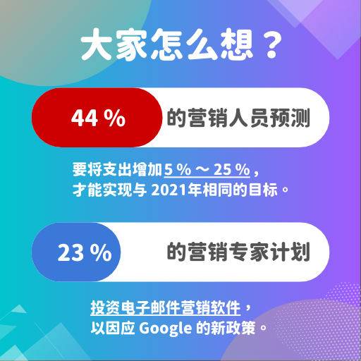 当我们无法看到访客在其它网站的行为时,我们还剩下什么?当然是访客在我们自己的网站上留下的蛛丝马迹──第一方数据。乍看之下,第三方cookie退场对于邮件营销似乎没有直接影响,但如果我们细看统计数据,也许会看出一些端倪:23%的营销专家计划投资电子邮件营销软件。第一方数据成为第三方cookie退场后首要收集的资料,再观察上述的统计数字,可能代表有将近1/4的营销专家认为,邮件营销是收集第一方数据的一个重要途径。