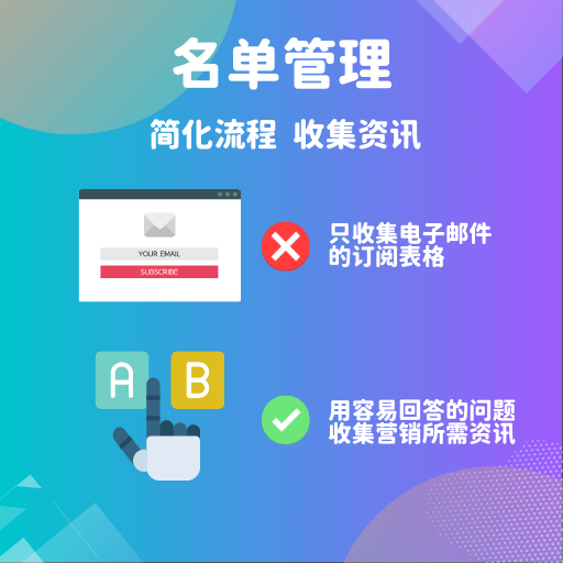 收集名单时,主动打探更多营销需要的讯息,例如在第一封欢迎订阅邮件中,加入1分钟就能完成的单选题问卷,鼓励订阅户回馈他的信息、订阅偏好和感兴趣的内容,藉此得到更多的第一方数据。后续还可以透过追踪有点击行为的客户,或是追踪在官网放弃购物车没有结账的客户们,将他们分类到特定主题的联络人名单,为接下来的精准分众营销打下良好基础。